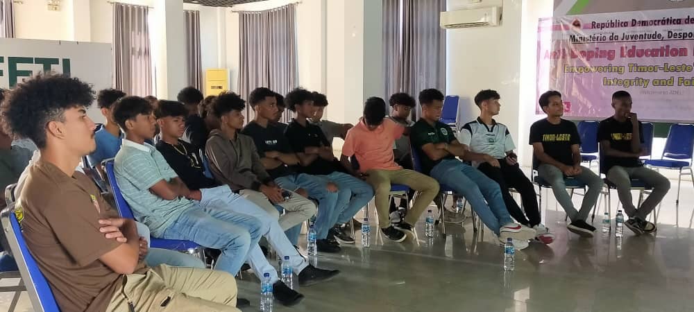 On Wednesday, June 19, 2024, at the Xanana Sports Center training room in Dili, the National Sports Commission (NSC) conducted another session of the Anti-Doping Education & Learning (ADEL) training for 29 Sub-19 national football players and one coach, totaling 30 participants. The players will be participating in the AFC Games in Surabaya, Indonesia, as per the FFTL plan in June.